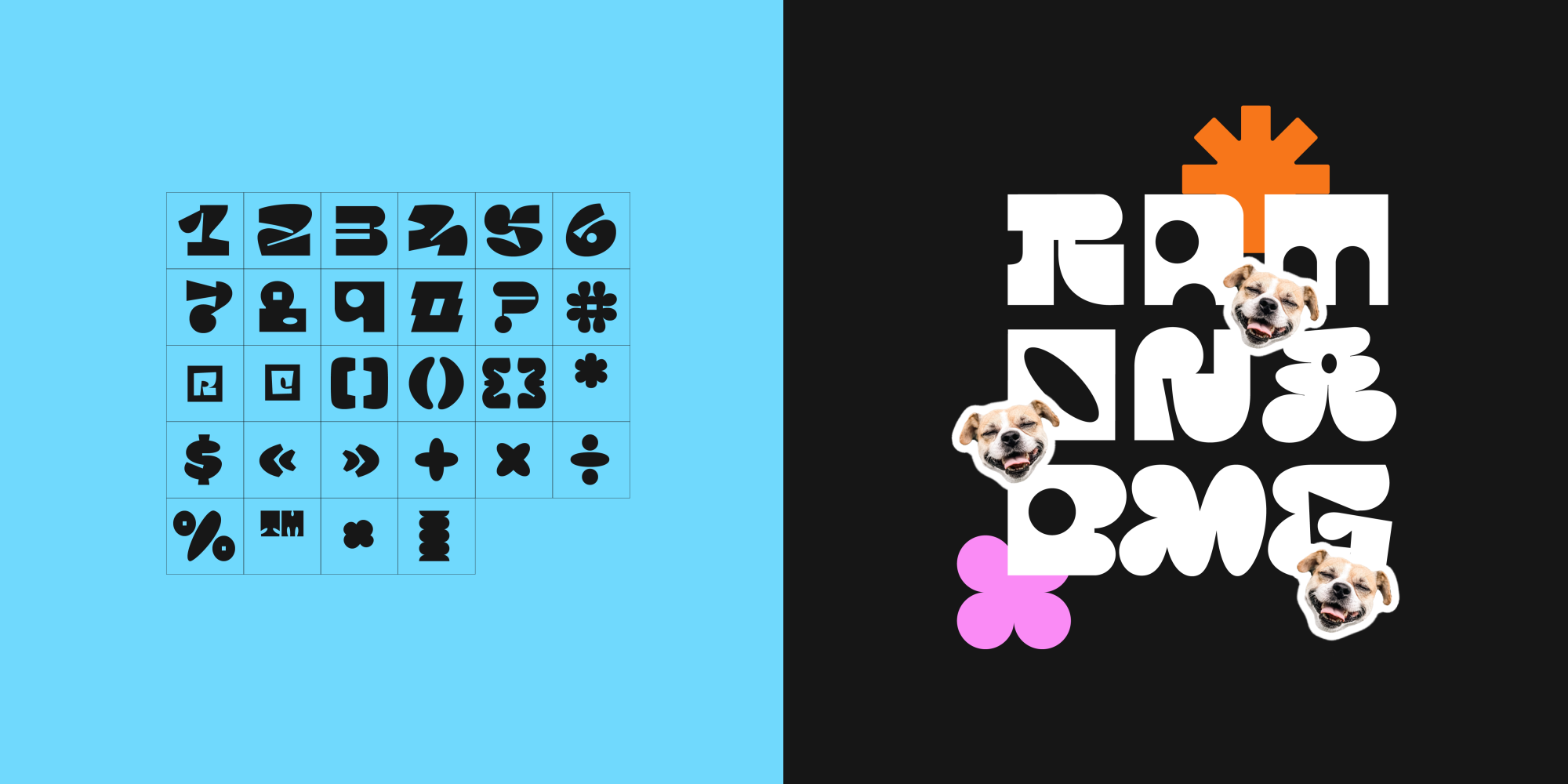 Ramona is a custom typeface designed for Bull Media. It’s not about defining a single, fixed identity. Instead, it offers a flexible system of character swaps—a typographic toolbox where each letter brings its own rhythm, flavor, and point of view.