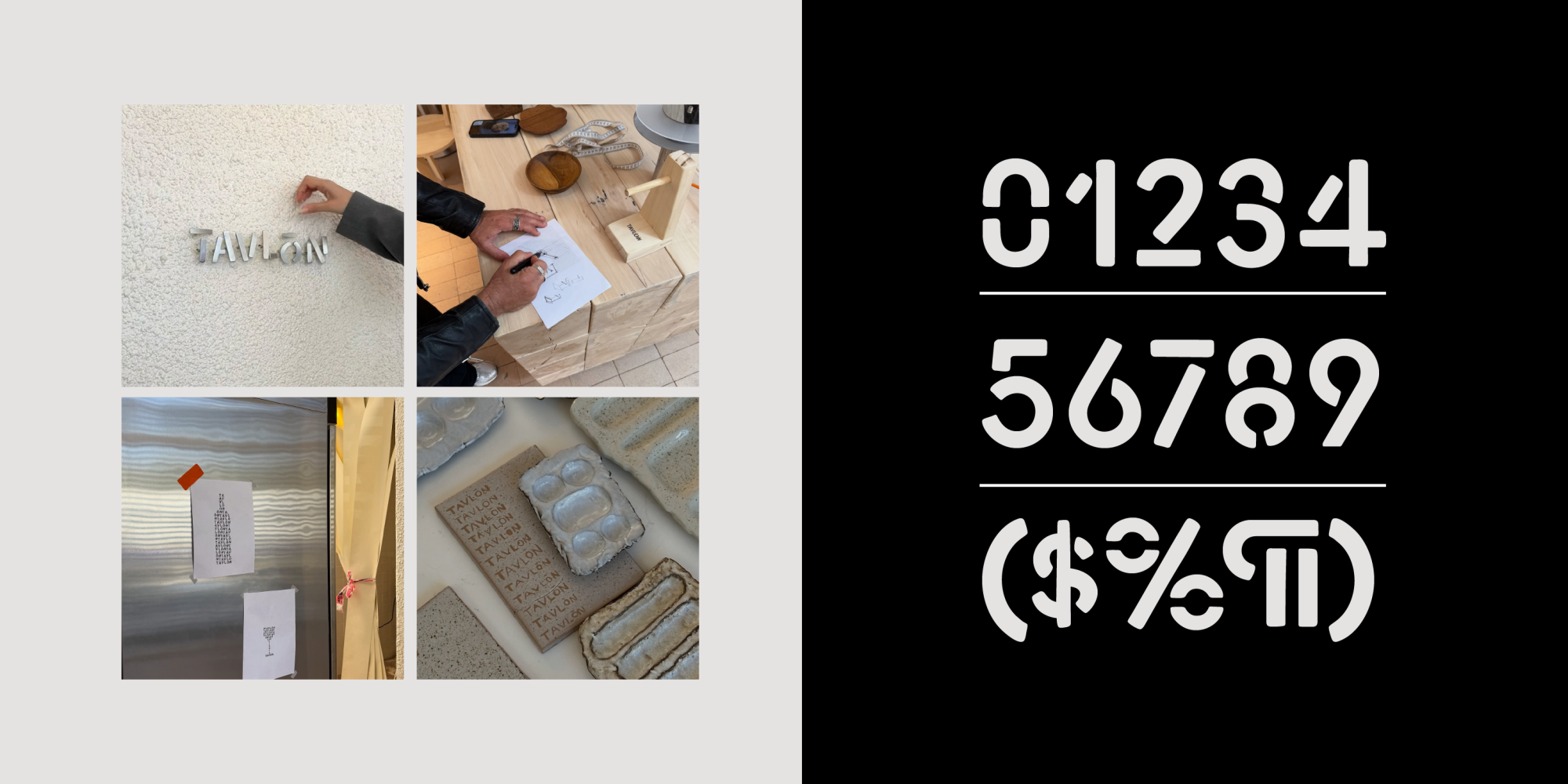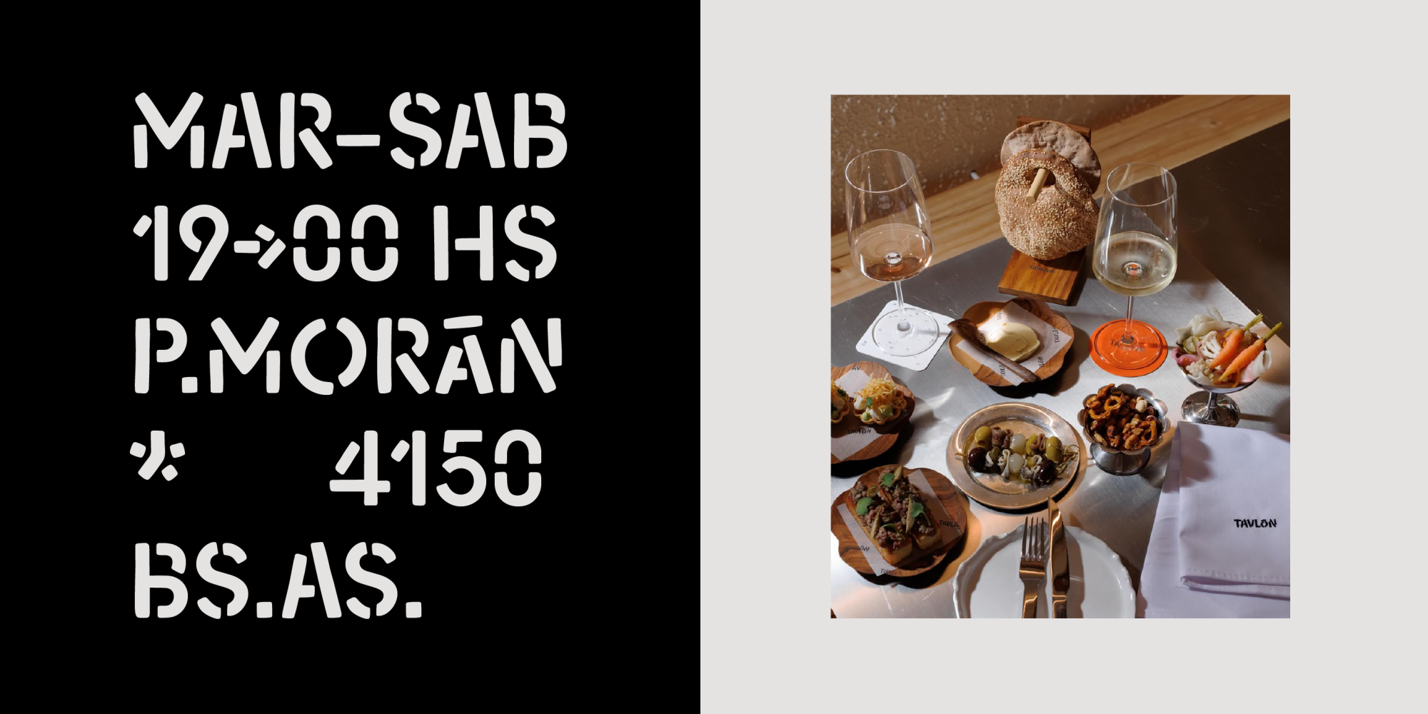 The typeface developed for Tavlón was born from the restaurant’s own spirit: a space where wine, seasonal cooking, and noble materials come together with precision. Drawing from stencil language and handcrafted processes, the letterforms recover the purity of essentials such as wood, steel, and brick.