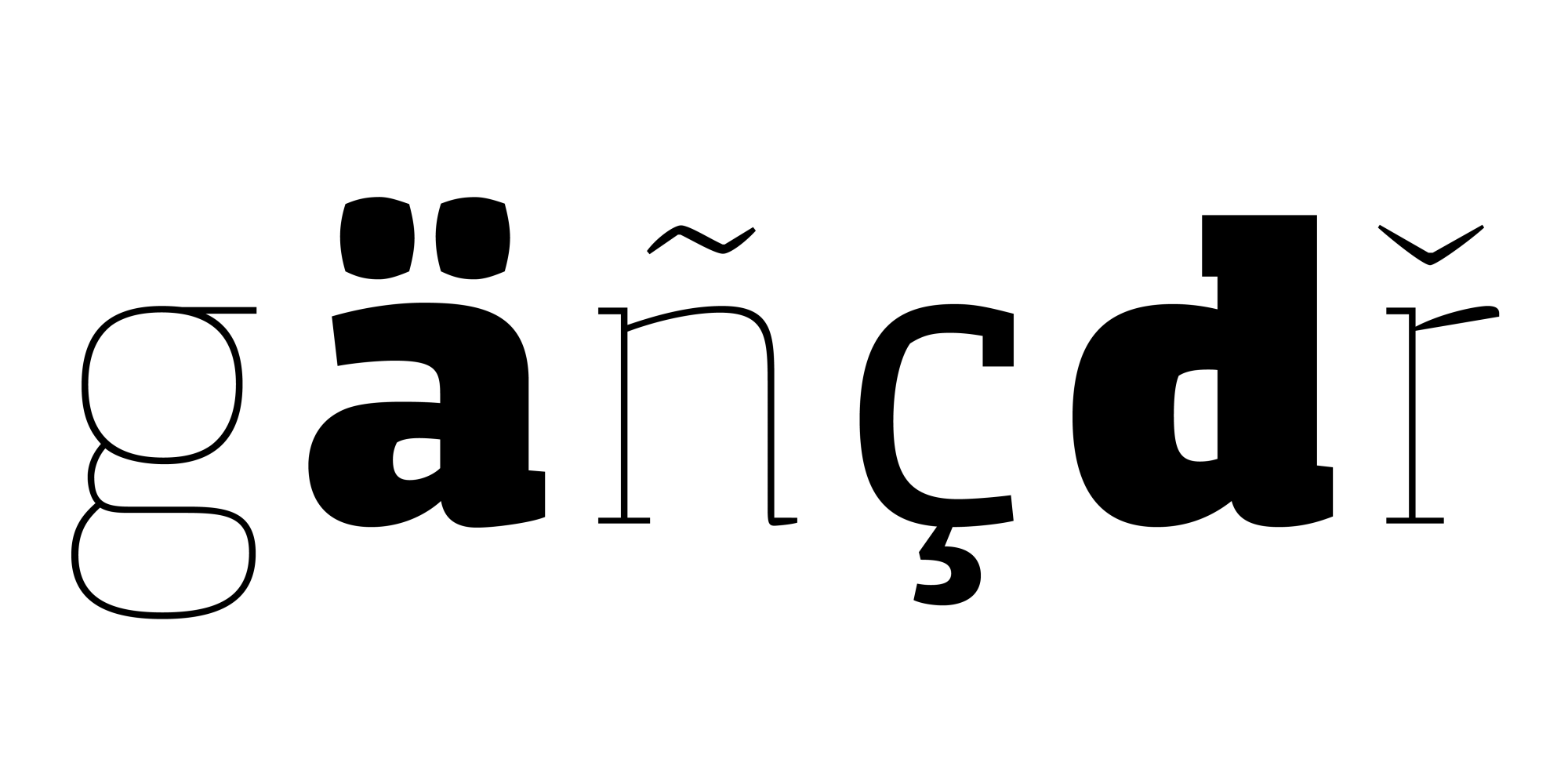 The curves combine fluidity with the flatness and generate a special vertical tension and text rhythm. Truncated counterforms provide the necessary tone to generate the feeling of expansion, growth and power which was the main idea behind the project. The variables are airy, broad without compromising performance. The details of the letters, especially in terminations and diacritics generate a rhythmic visual landscape rich in details.