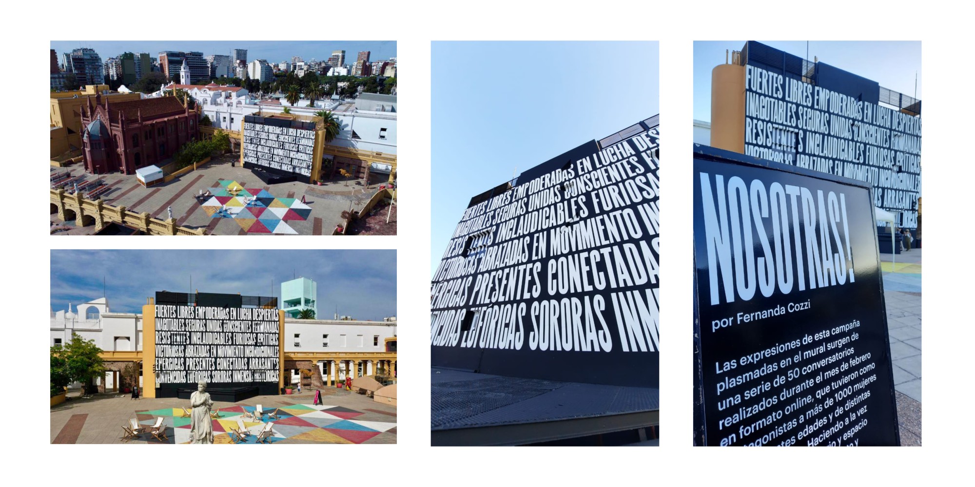 No drawing or illustrations, only those black and white words that function as a feminist banner, a proclamation of who we are, of our identity, of our struggle. Beyond the differences, the mural will challenge women and all those who have ever fight for something.